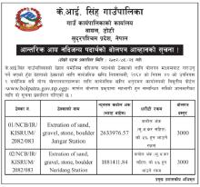 आन्तरिक आय नदिजन्य पदार्थको बोलपत्र आव्हानको सूचना (दोस्रो पटक प्रकाशित)।