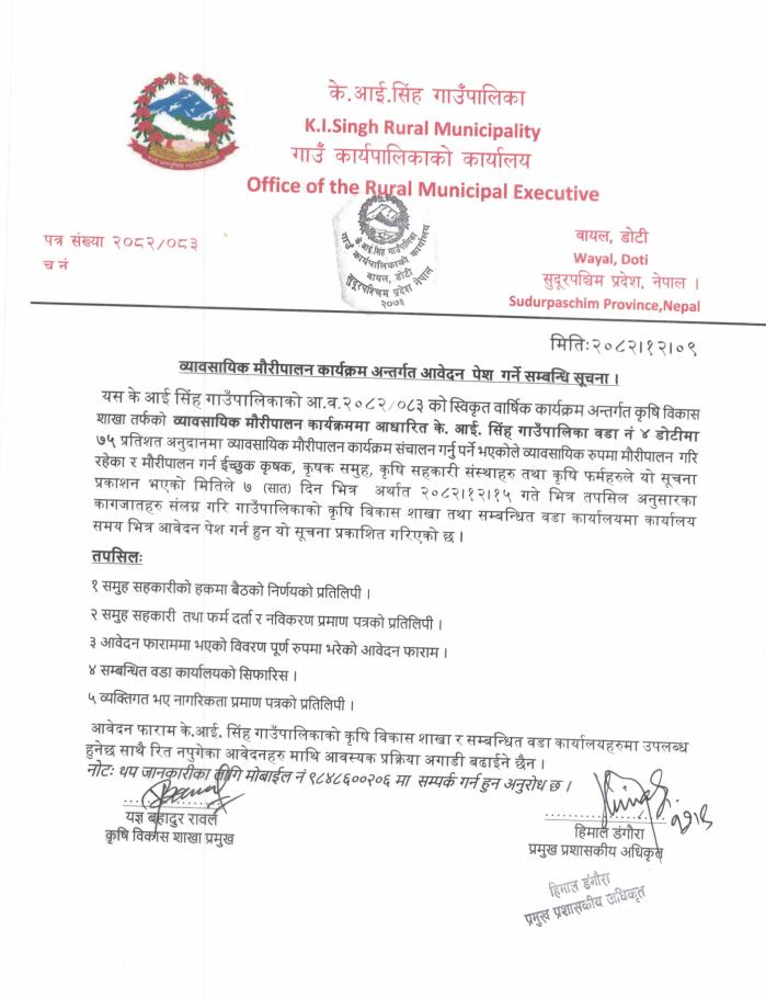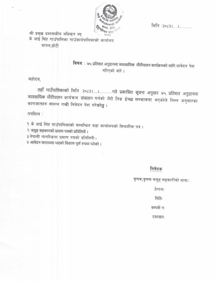 व्यावसायिक मौरीपालन कार्यक्रम अन्तर्गत आवेदन पेश गर्ने सम्बन्धी सूचना।