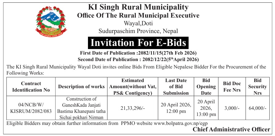Invitation for E-Bids (04/NCB/W/KISRUM/2082/083)
