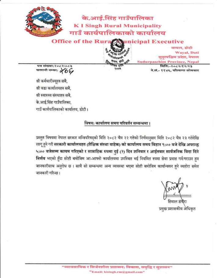 कार्यालय समय परिवर्तन सम्बन्धी सूचना।