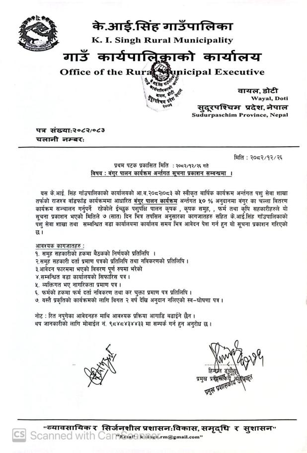 बंगुर पालन कार्यक्रम अर्न्तगत सूचना प्रकाशन सम्बन्धमा ।