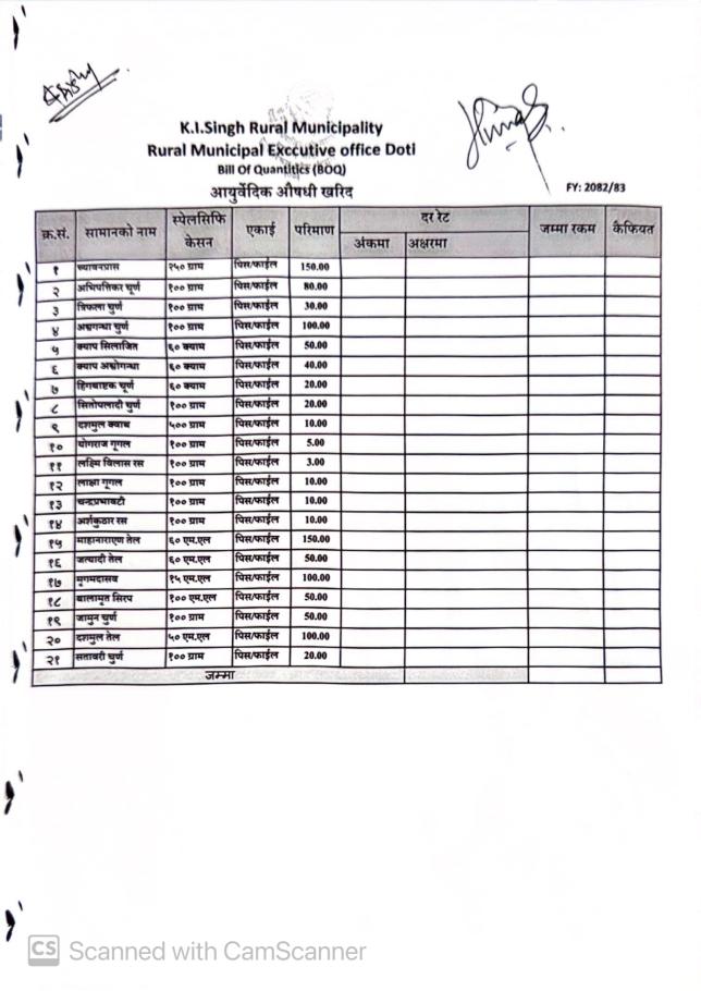 दरभाउपत्र पेश गर्ने सम्बन्धी सूचना (आयुर्वेदिक औषधि आपुर्ति)।