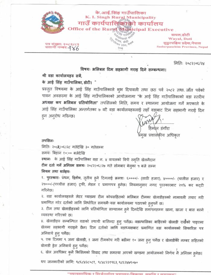 भलिबल टिम सहभागी गराई दिने सम्बन्धी सूचना।