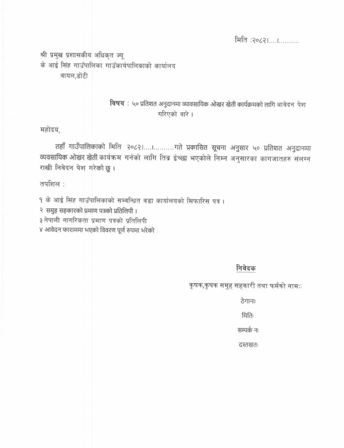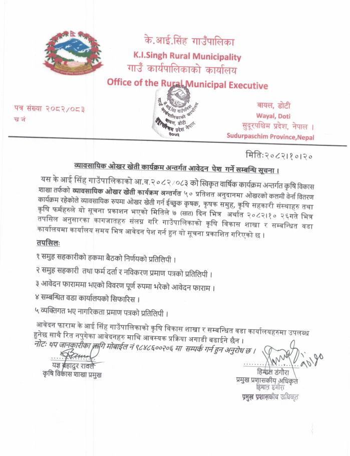 व्यावसायिक ओखर खेती कार्यक्रम अन्तर्गत आवेदन पेश गर्ने सम्बन्धी सूचना।
