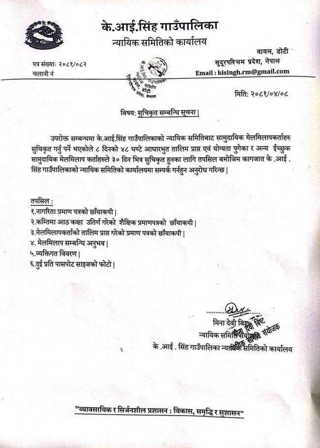 सुचिकृत सम्बन्धि सूचन (न्यायिक समिति) !